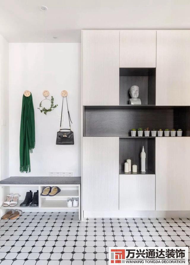 這是玄關(guān)處。愛干凈的姑媽在玄關(guān)處設(shè)置了鞋柜和衣帽間,這樣做也是為了給家里人帶去一個好印象,而且在一進(jìn)門的時候就換鞋的話,有利于保持家居環(huán)境的整潔度。